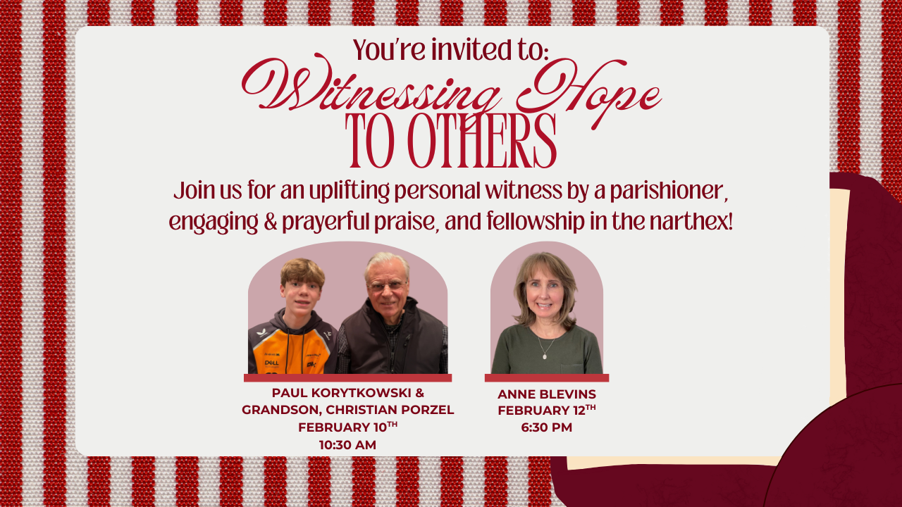 6:00 pm Vigil English & 8:15 am, 12:00 pm, 6:00 pm Spanish
