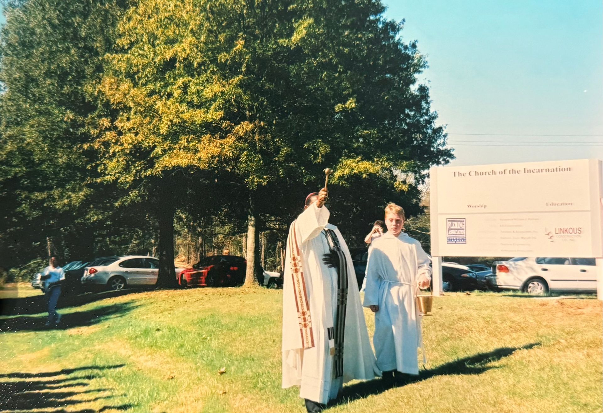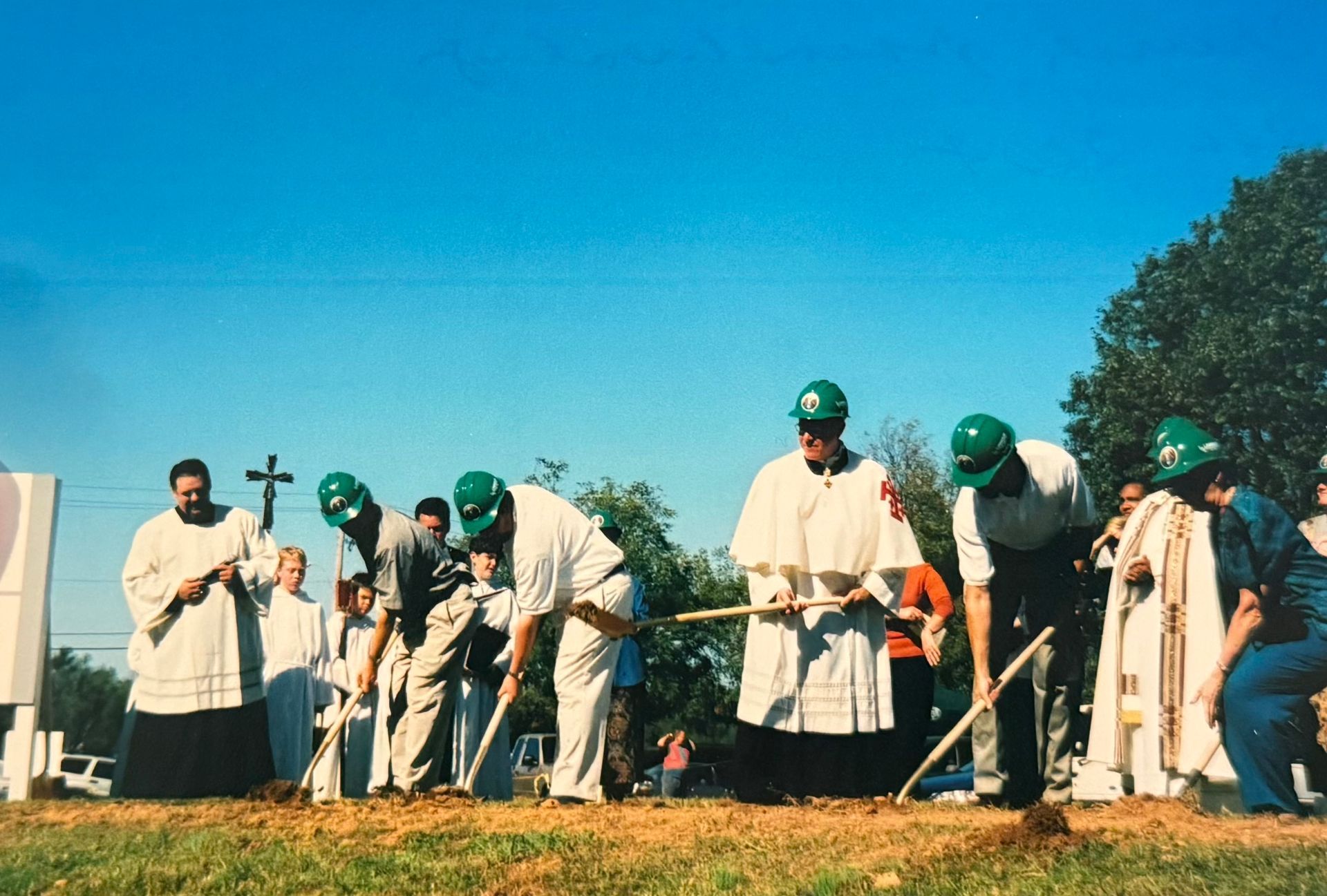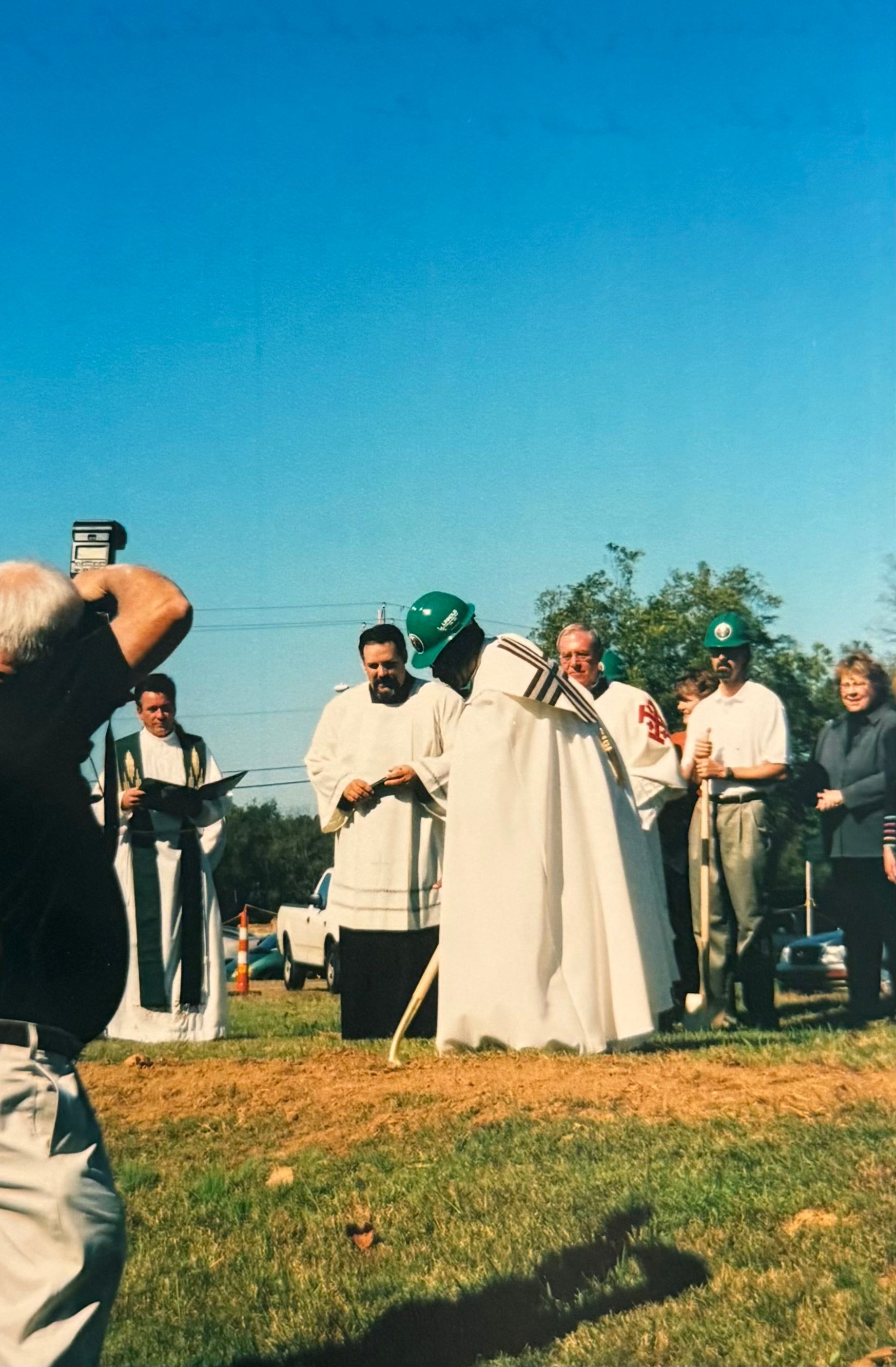So, Saturday evening service was set up at the United Methodist Church on the town square. Parish Religious Education classes were held in the Presbyterian Church on the corner of Poplar and Peterson Lake Road each Thursday and Choir practices were held at Saint Andrew Episcopal Church on Walnut Street each Tuesday evening. Fr. Pugh soon discovered that there would have to be a major fundraising effort if a church was to come forth. It was going to be the first Catholic Church in the town of Collierville. On November 20, 1983 five hundred people gathered and participated in ground breaking ceremony. It was going to be the new Bishop’s first such ceremony within his new Diocese. The Most Reverend Bishop J. Stafford commended efforts of this small but strong community of believers and urged them to continue in their mission. On March 26, 1984 the Catholic Church of the Incarnation was dedicated by Bishop Stafford with Bishop Dozier in attendance.